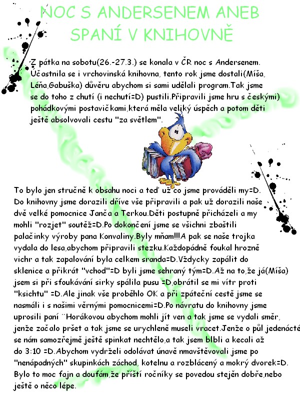 -> Také jse spali v knihovně a pořádali NOC s Andersenem =)