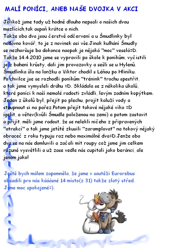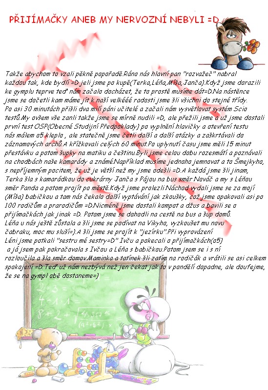 -> 22.4.2010 naše nervíky začaly trošku pracovat, přeci jenom, psaly jsme Scio testy na Gymnázium do Náchoda =)