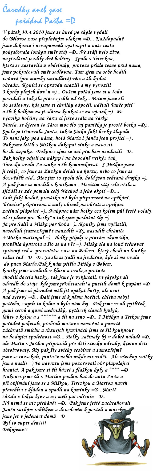 -> Čarodějnický slet v Bělovsi aneb nikojo krom jedné čarodějky jsme neupálili =D, ale rozhodně bylo mrtě mrtě moc srandy =D