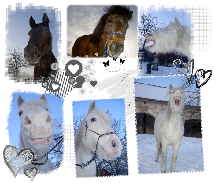 Každý si určitě všiml, že nám napad sníh :D... Když nám v pátek skončila škola, šli jsme ven a málem nás "odfouk" vítr :D.... Běželi jsme k nám domů,kde jsme si sbalili saky paky do batohu a šli jsme směr vlakové nádraží :D... Totálně jsme se těšili, až nastoupíme do toho vyhřátého vlaku.. Pořád jsme si ale nebylli jisty, jestli otevřeme dveře, prootže to byl ještě ten starý vlak, ale v Bělovsi jsme je nakonec otevřeli.... Doslova jsme se těšilim, až budem v teple sedlovny... Přišli jsme, div jsme neklepotali zubama, převlíkli se a šli pustit Happynku ven.. Pak jsme si povídali, jedli a pili ( čaj :D ) holky zatím uvařili lněné semínko a my jsme šli připravit baštu pro koníky.. Pak se do toho přidao lněné semeno a my jsme se v tom rukama hezky porochňali, abychom to promíchali :D a pak jsme šli koníky zavřít... Každého jsme si odchytili, vyčistili kopýtka a stěrkou přejeli zachumelenou srst.... Pak jsme koníkům dali sínko a šli zase do tepla sedlovny.. Pak se šli Beneček a Dája proběhnout ven, jenže Dája vzal kramle a my jen doufali, že se vrátí. Nakonec se asi po 20 minutách vrátil, celý zasněžený a zmrzlý.. Vše v pořádku dopadlo a my odjeli do tepla svých domovů :)
